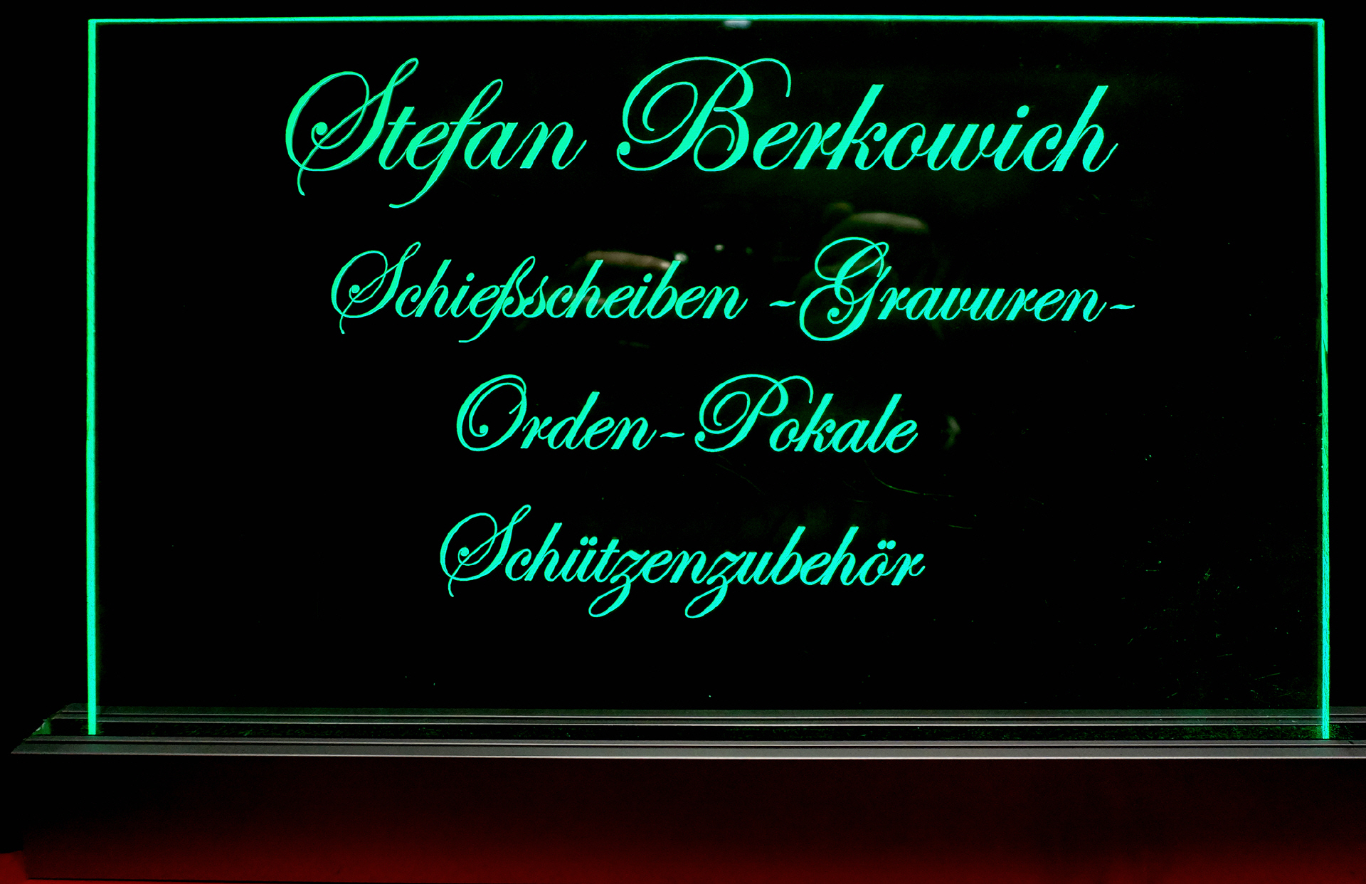 Plexiglass Werbeschild mit LED Beleuchtung.