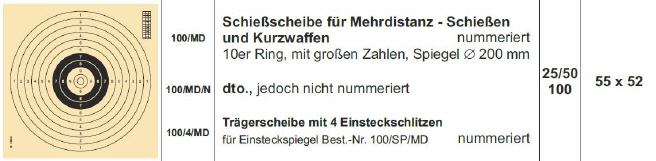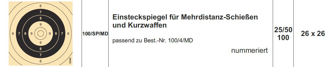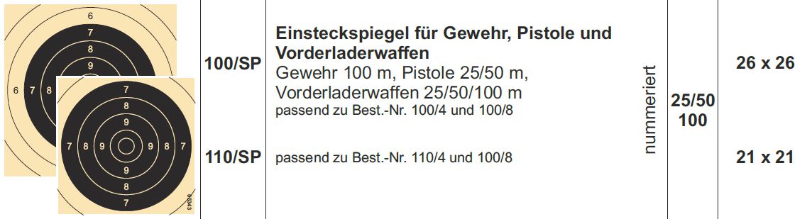Für das sportliche und jagdliche Schießen besonders entwickelt. Maßgenaues und randscharfes Scheibenbild durch ständige Erneuerung der direkt belichteten Druckplatten.