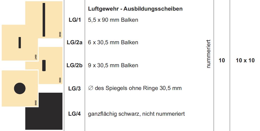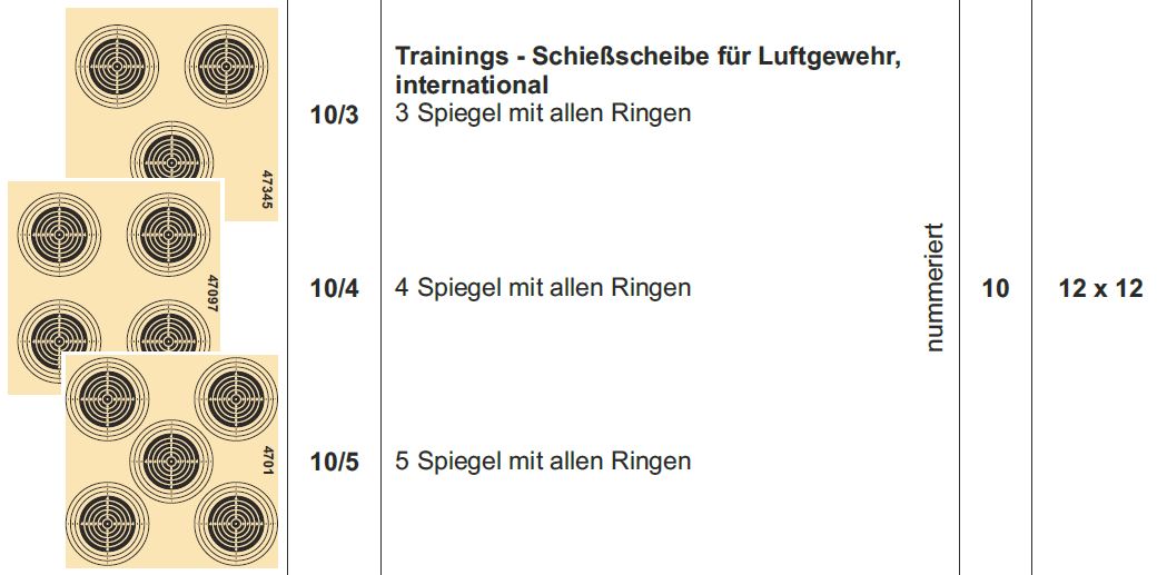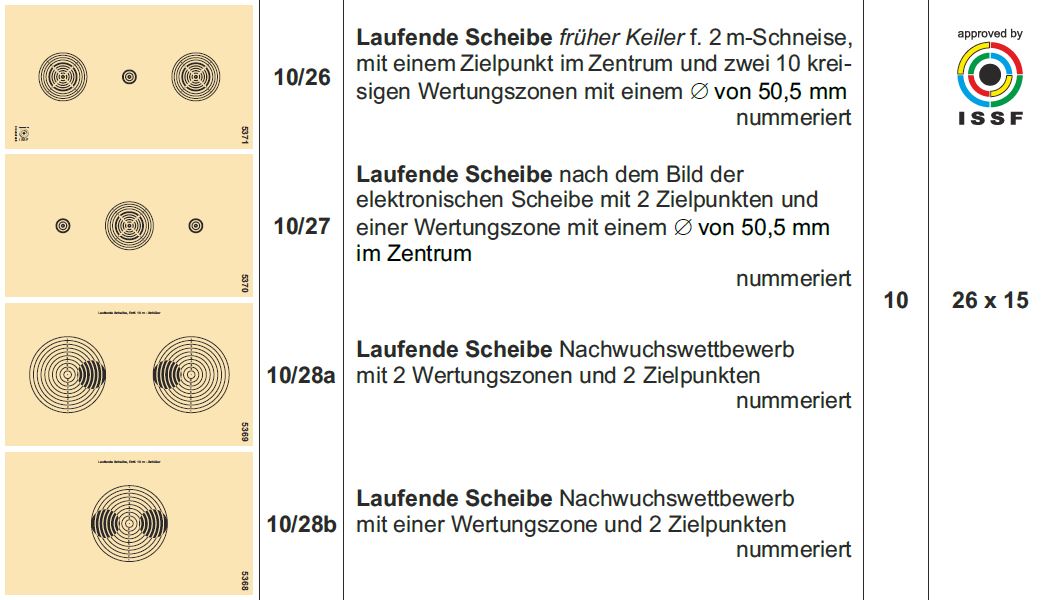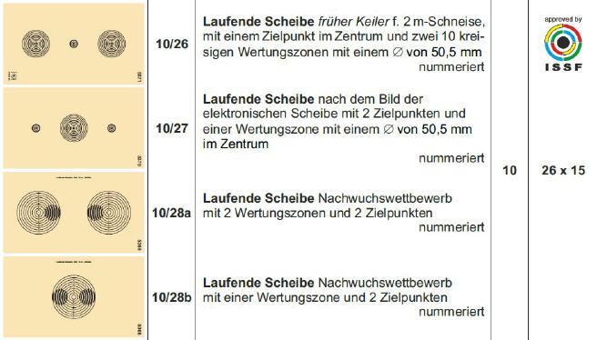 Für das sportliche und jagdliche Schießen besonders entwickelt. Maßgenaues und randscharfes Scheibenbild durch ständige Erneuerung der direkt belichteten Druckplatten.